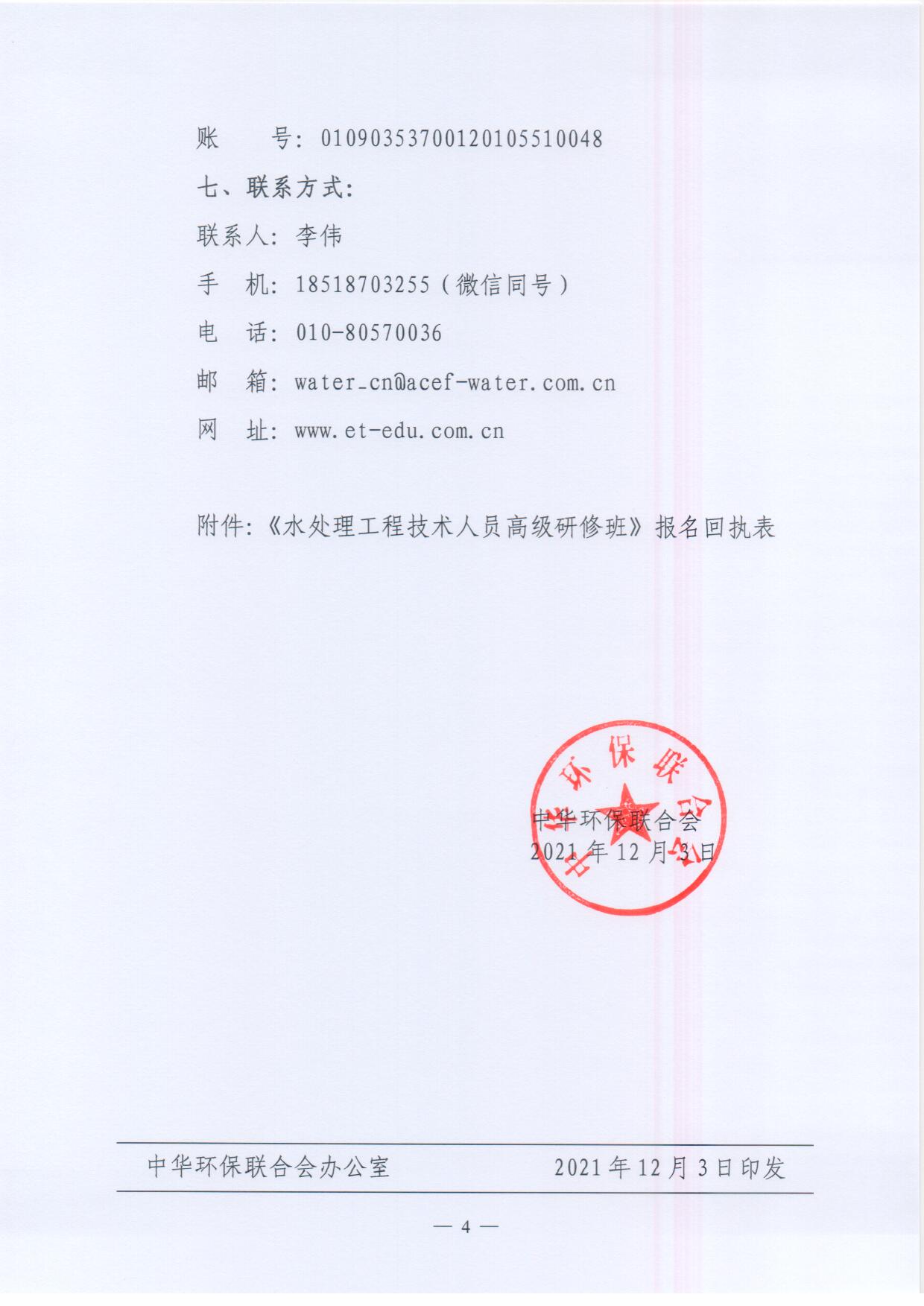关于举办“双碳背景下水处理工程技术人员高级研修班”的通知