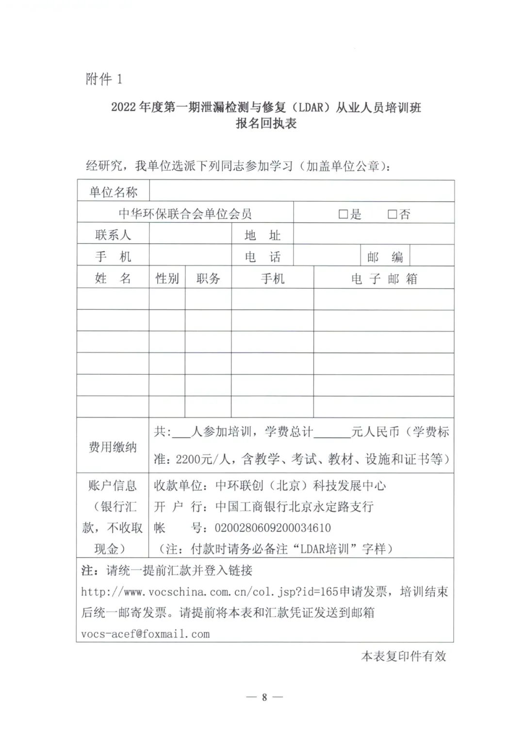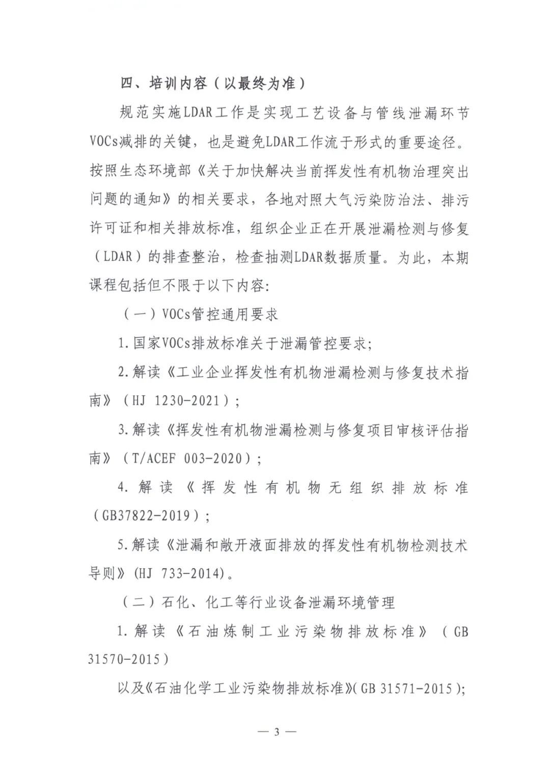 关于举办2022年度第一期泄漏检测与修复(LDAR)从业人员培训班的通知