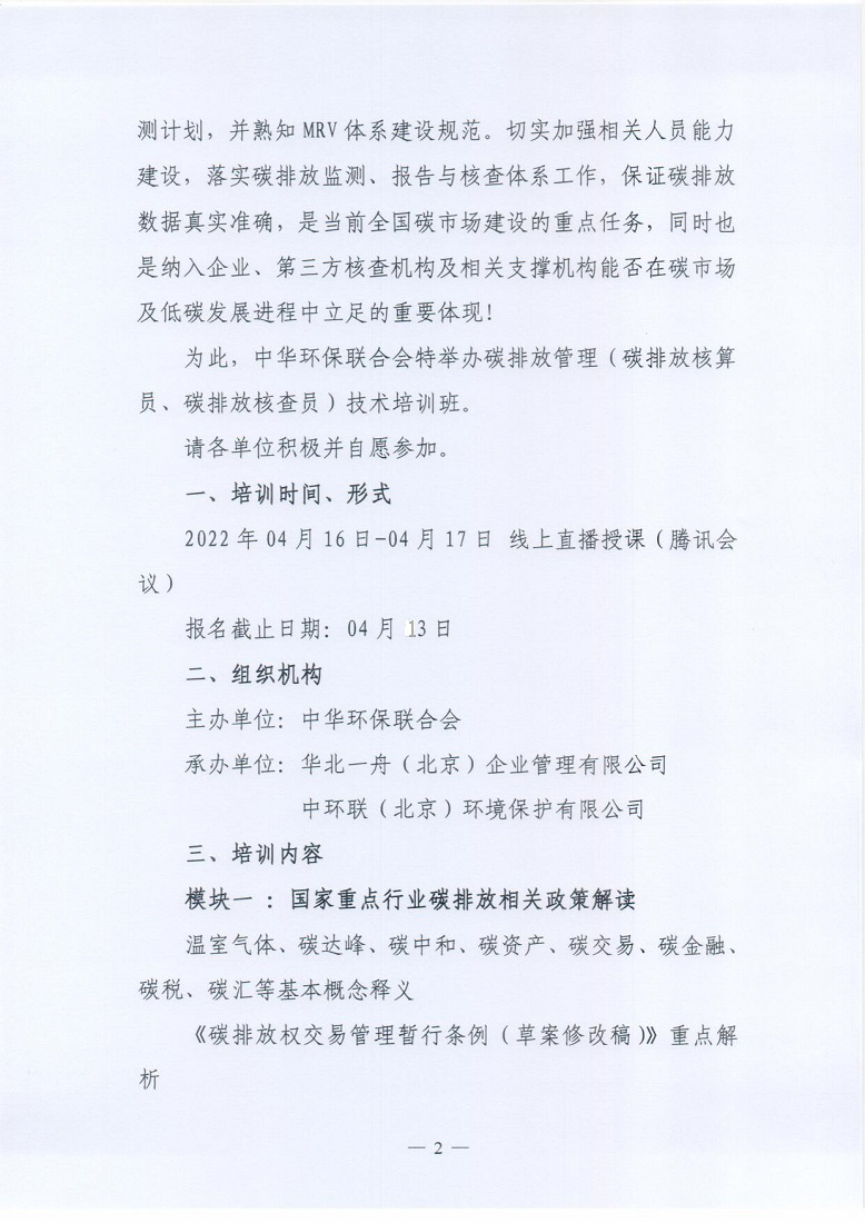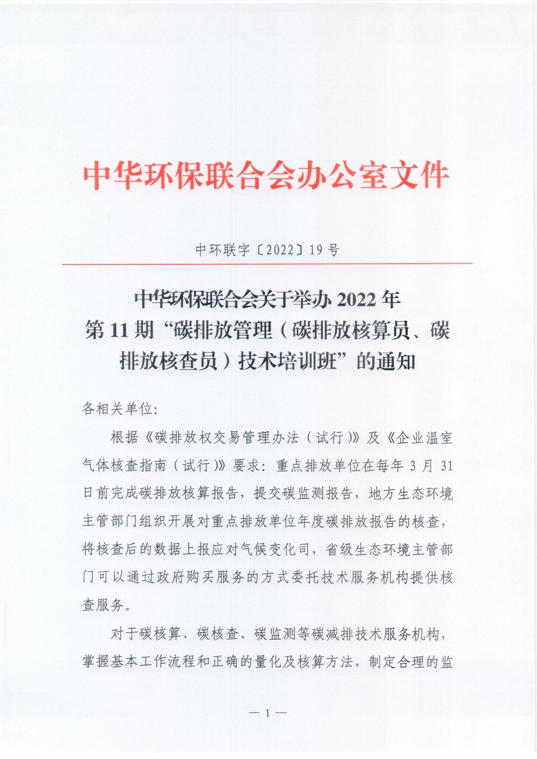 关于举办2022年第11期“碳排放管理(碳排放核算员、碳排放核查员)技术培训班”的通知