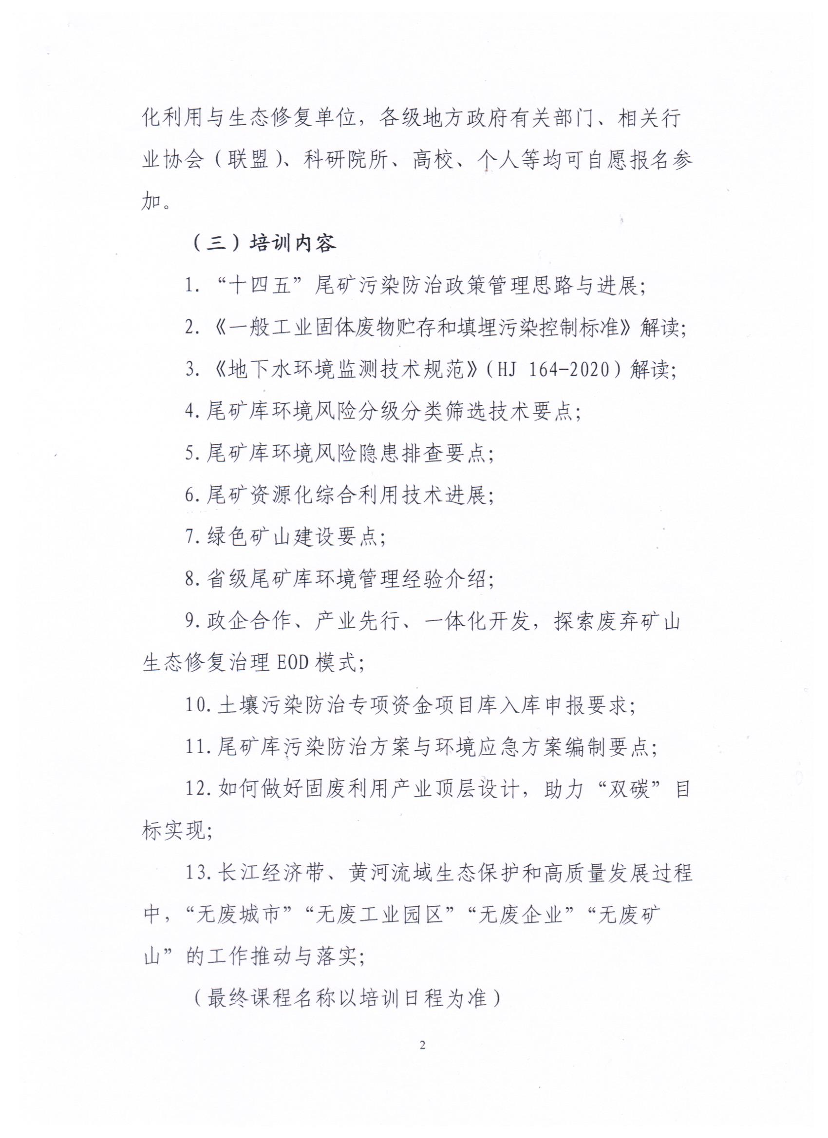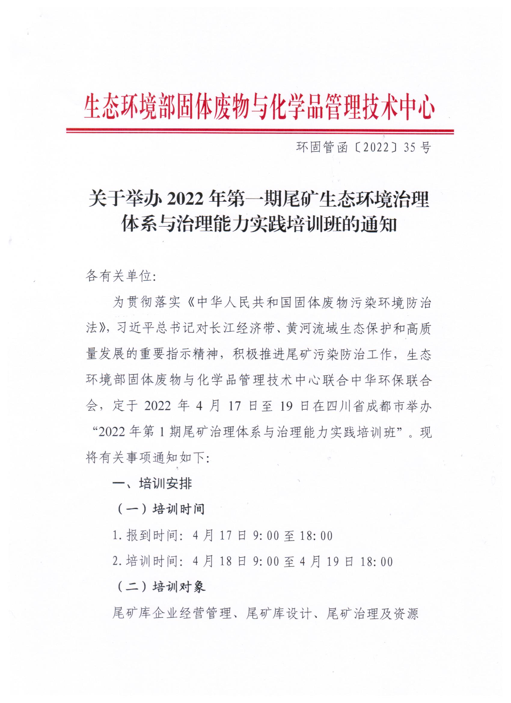 关于举办2022年第一期尾矿生态环境治理体系与治理能力实践培训班的通知