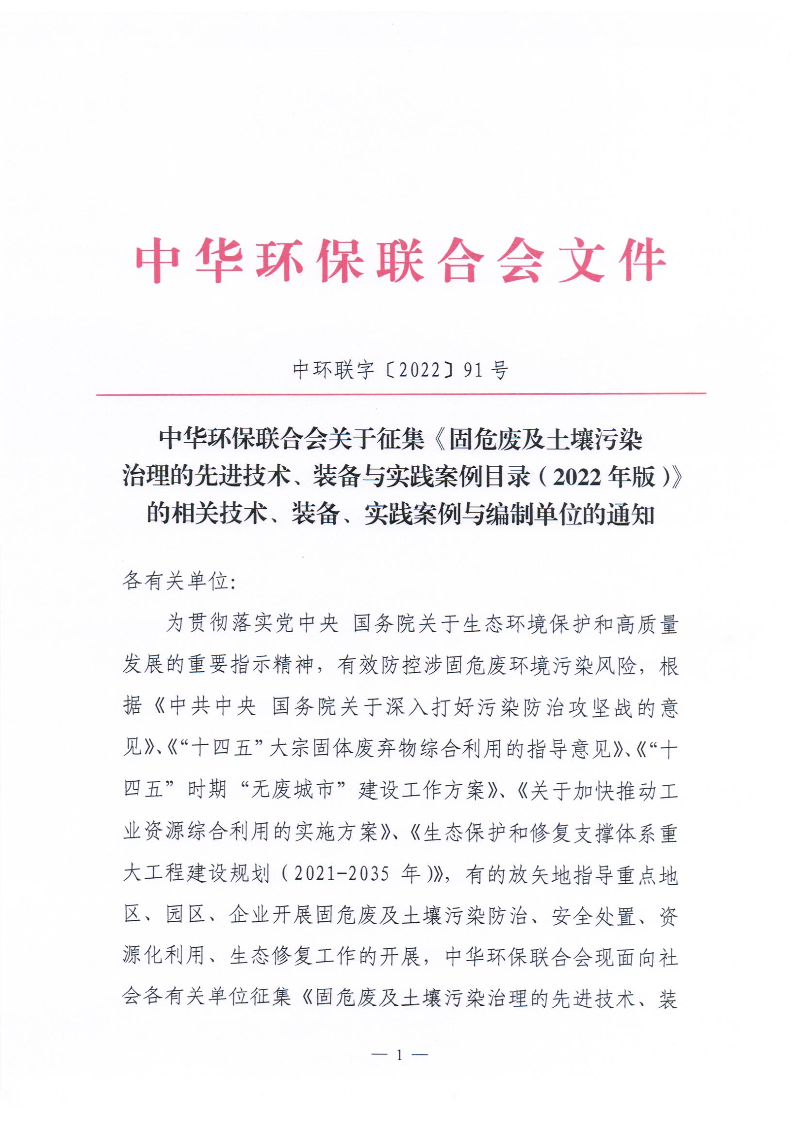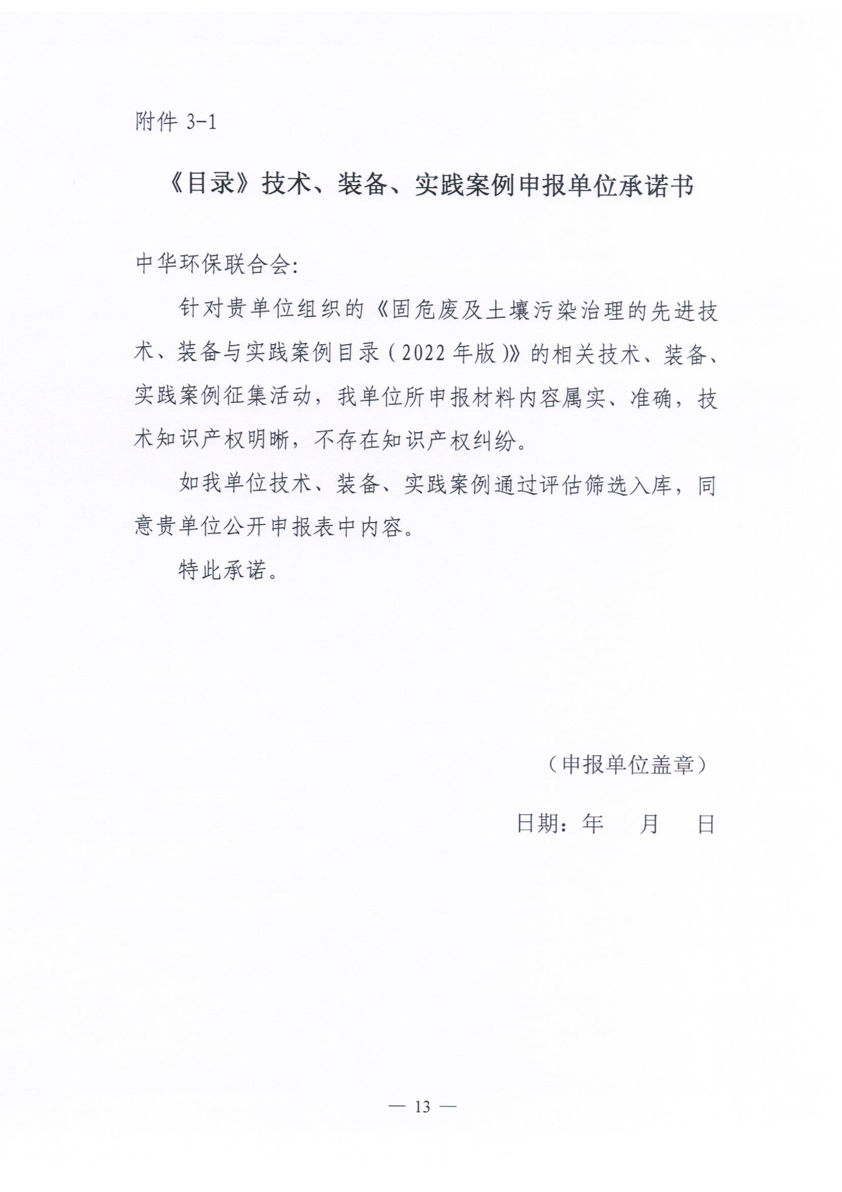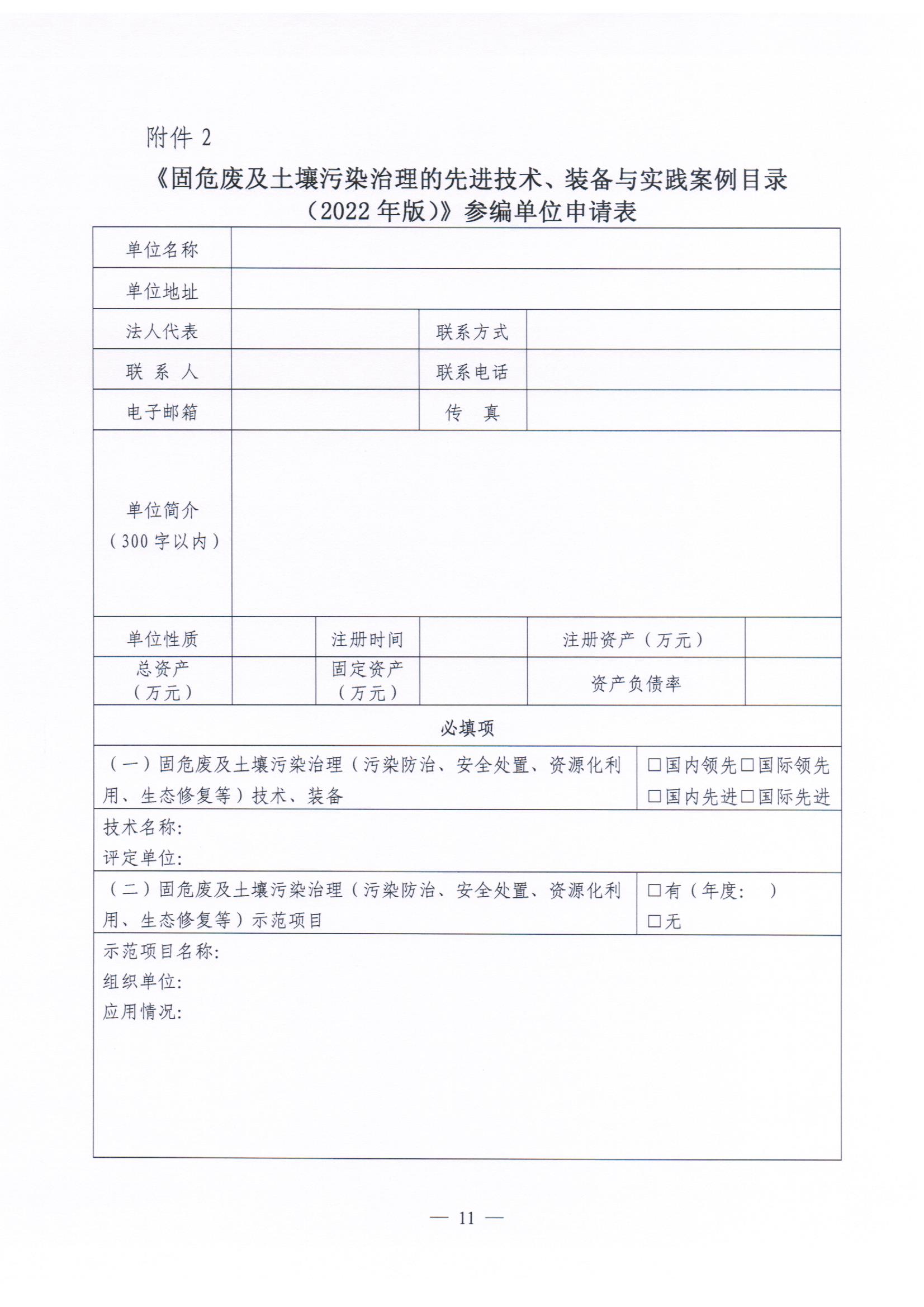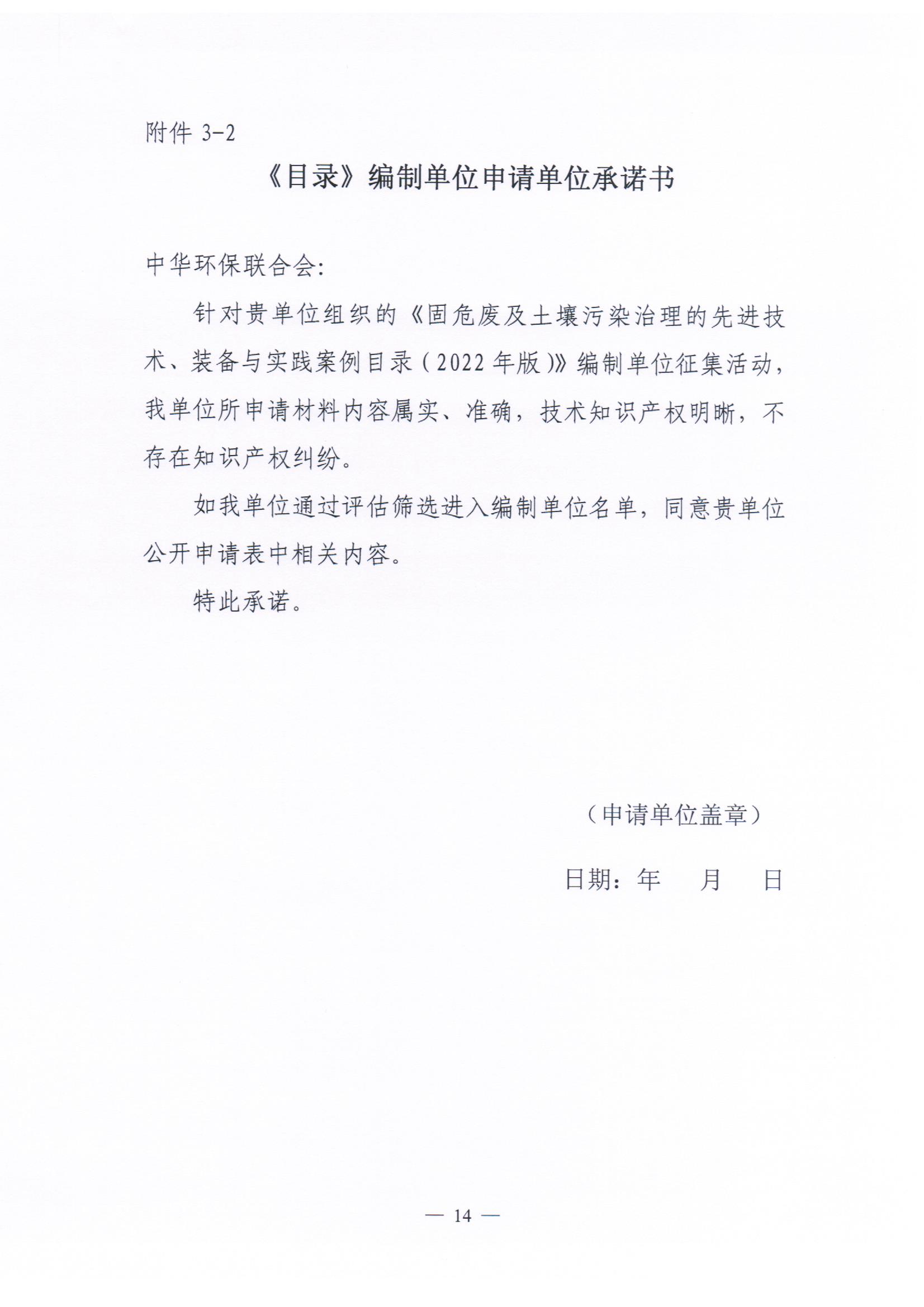 《固危废及土壤污染治理的先进技术、装备与实践案例目录(2022年版)》参编单位申请表 |