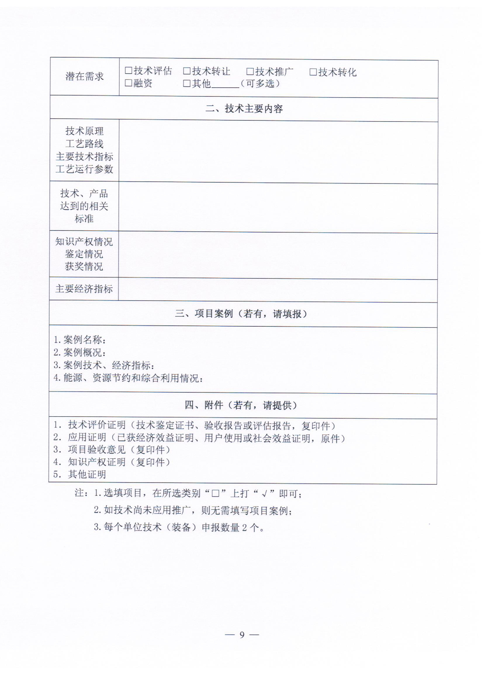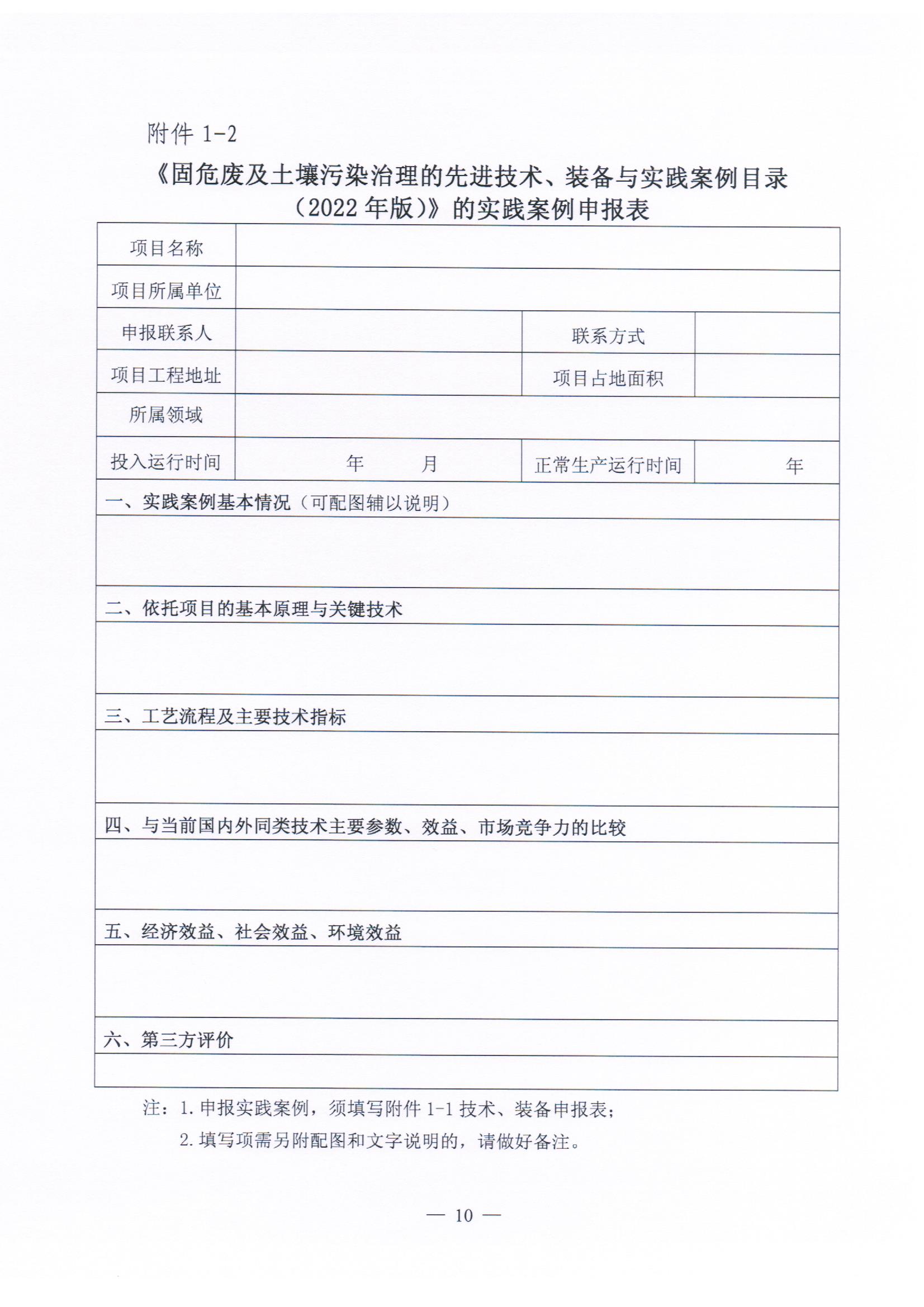 《固危废及土壤污染治理的先进技术、装备与实践案例目录(2022年版)》的相关技术、装备申报表 |