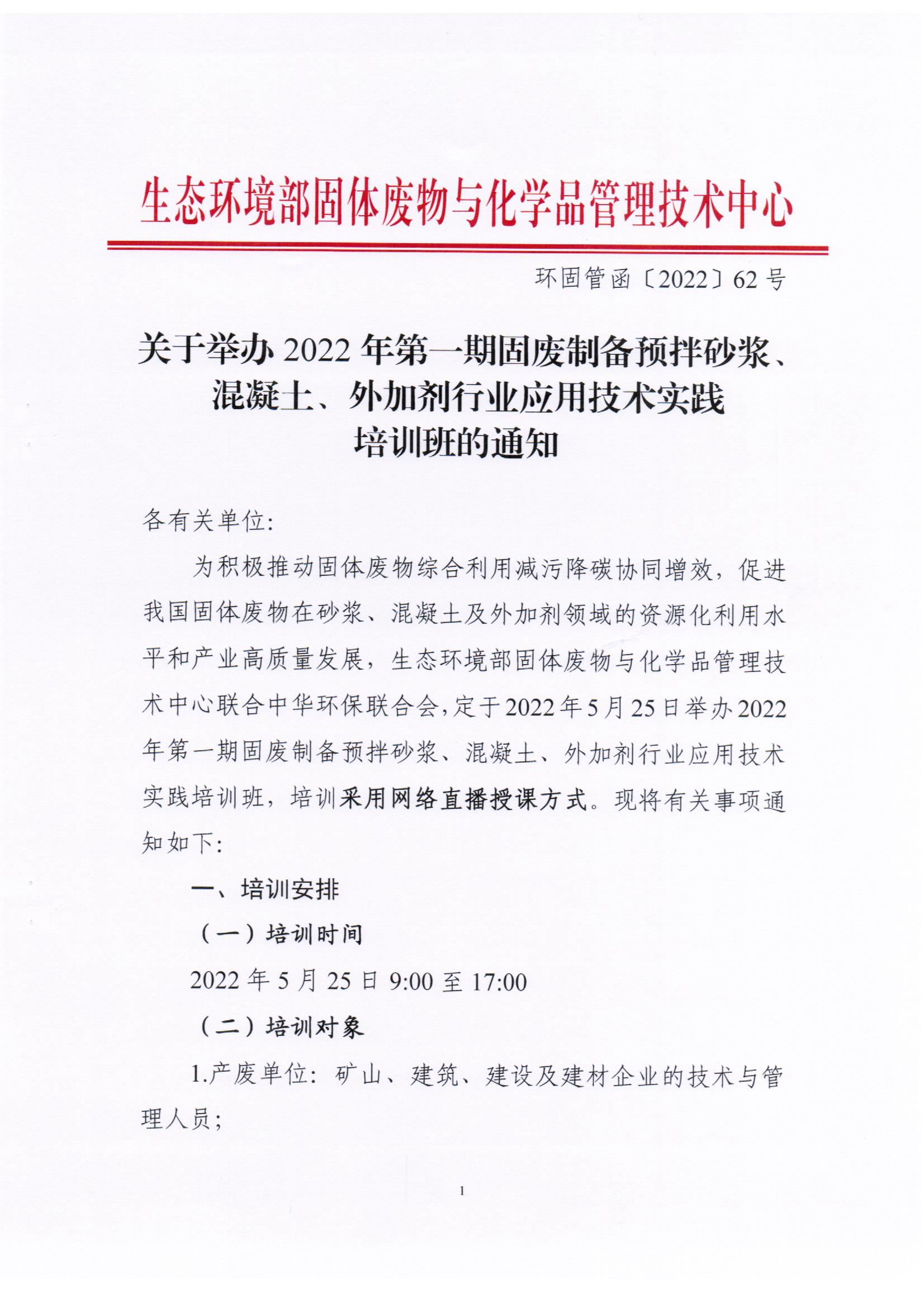 2022第一期固废制备预拌砂浆、混凝土、外加剂行业应用技术实践培训班