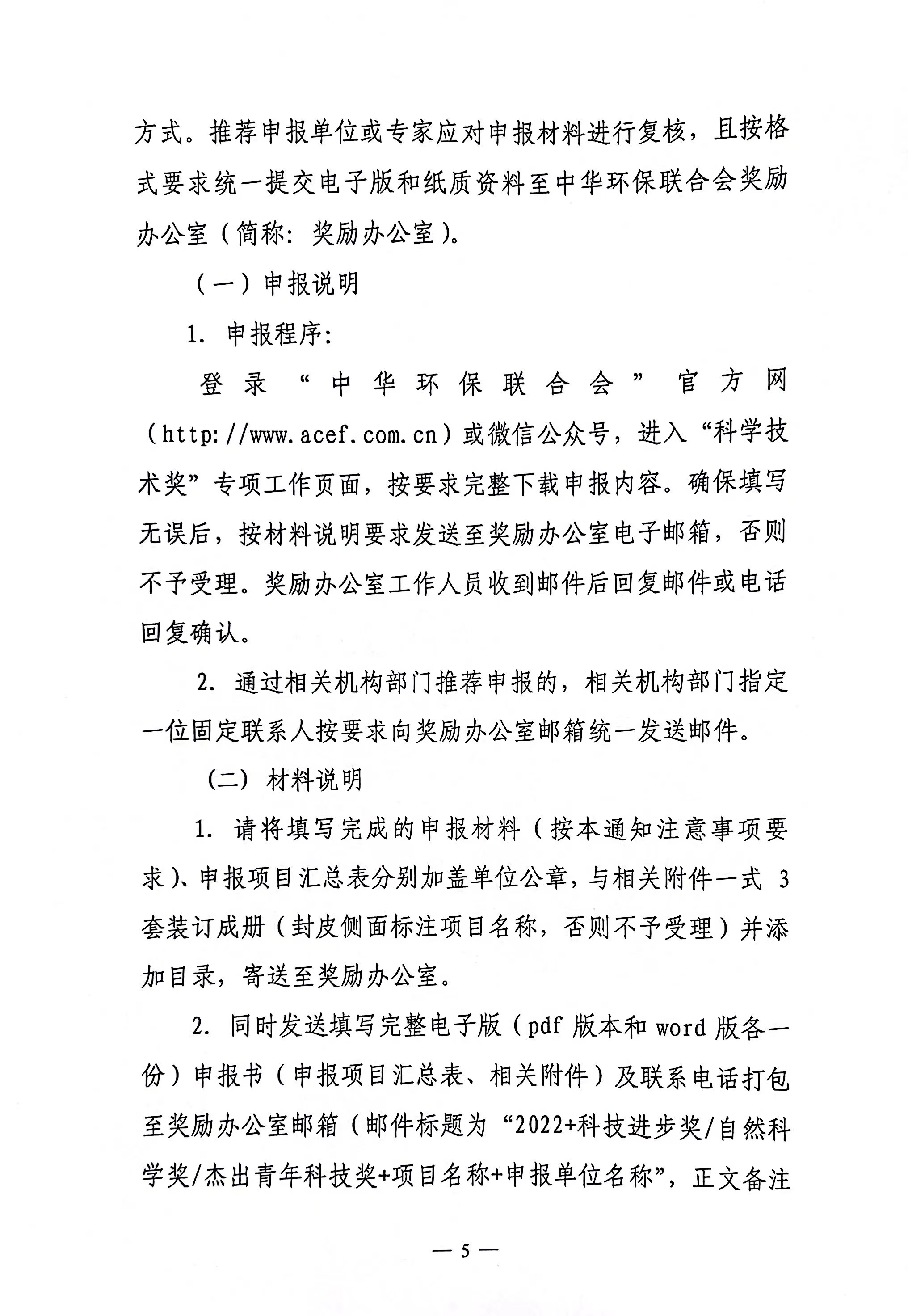 关于开展 2022年度中华环保联合会科学技术奖申报工作的通知