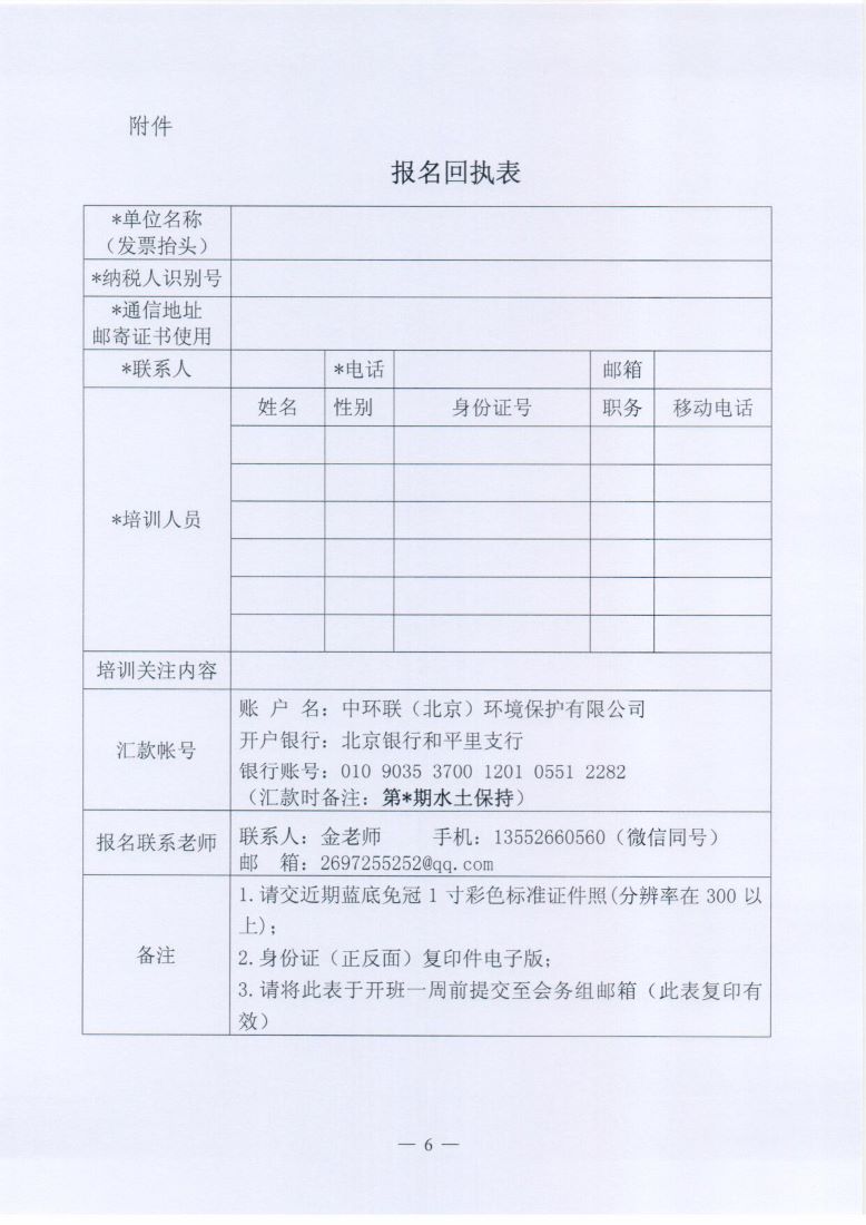 报名回执表