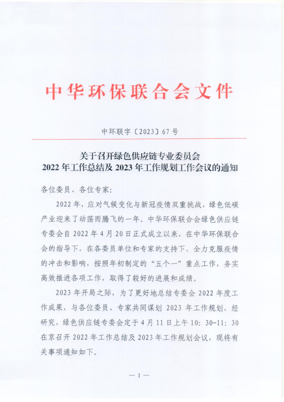 关于召开绿色供应链专业委员会2022年工作总结及2023年工作规划工作会议的通知