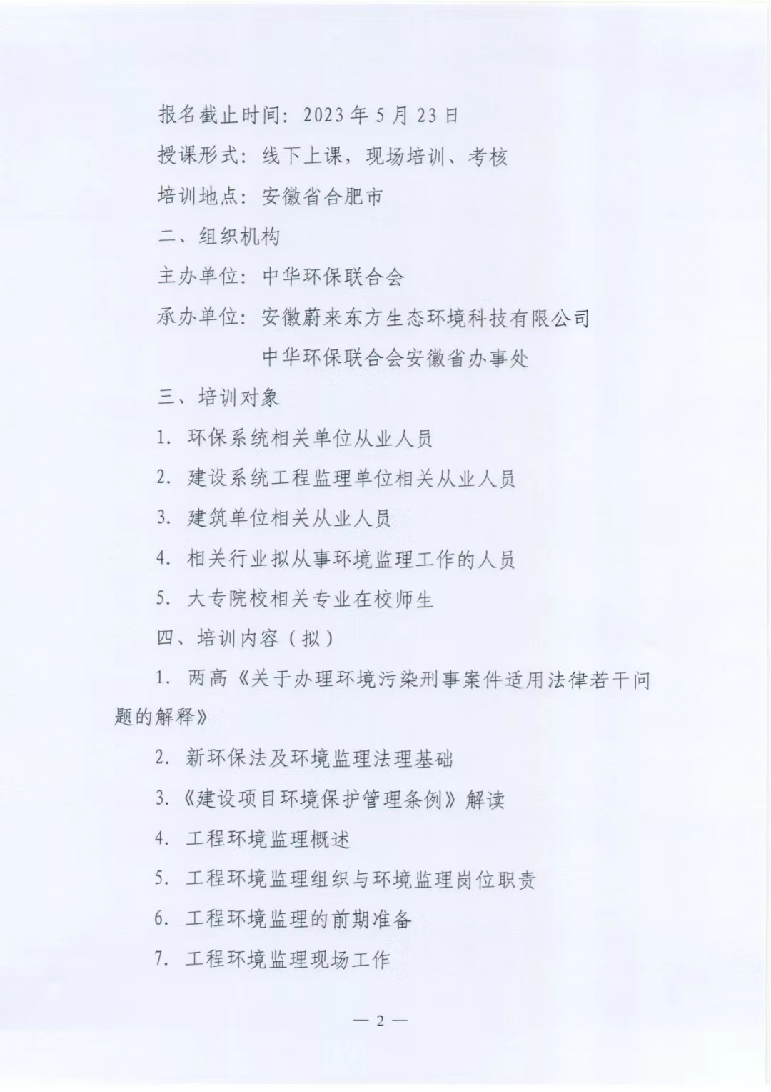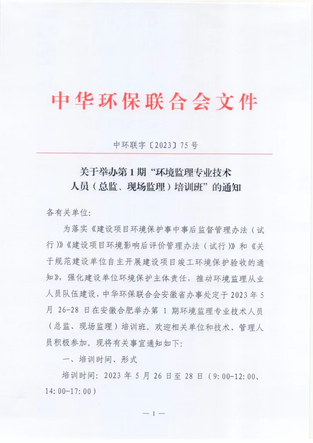 关于举办第1期“环境监理专业技术人员(总监、现场监理)培训班”的通知