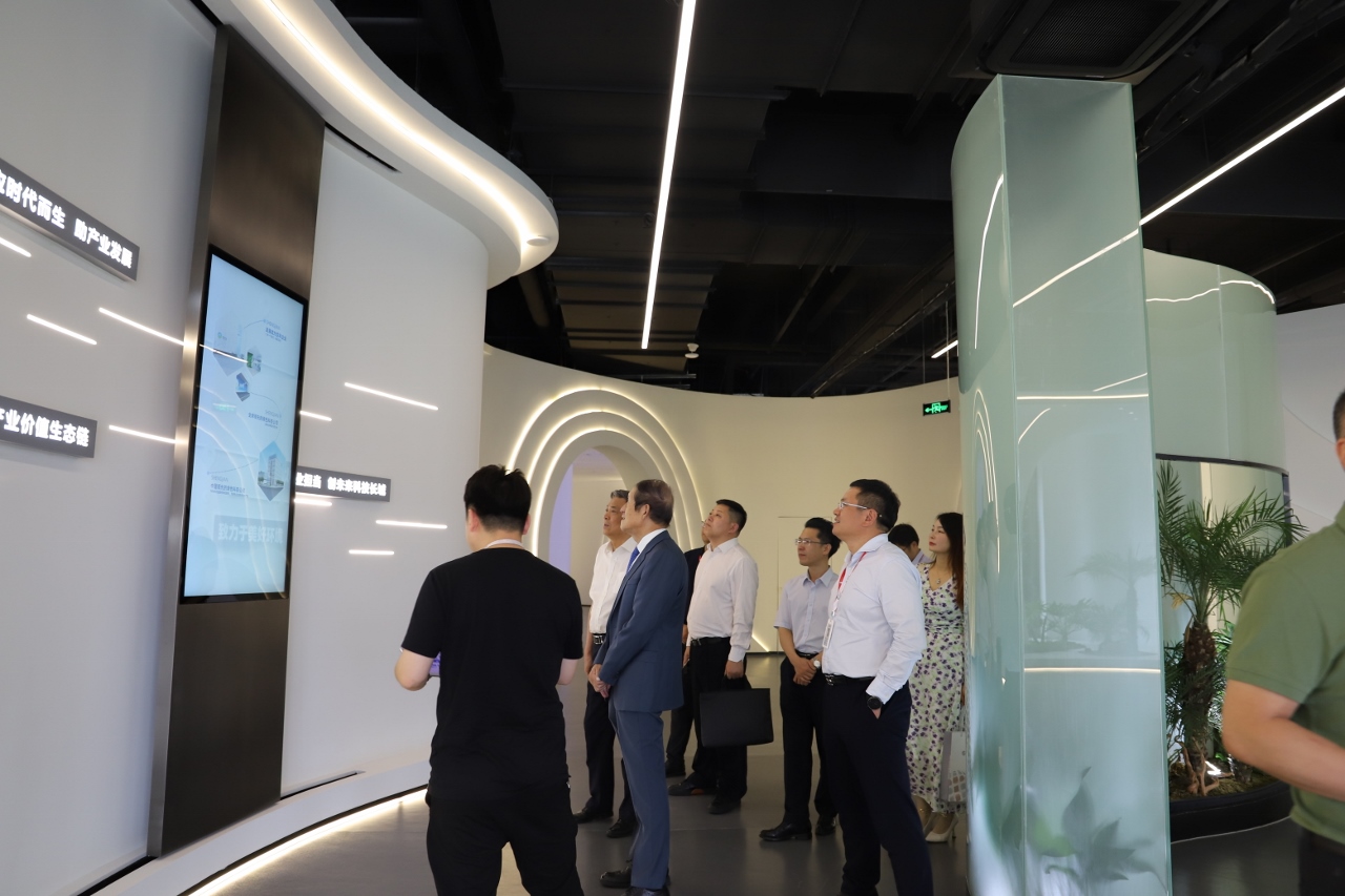 张伟明董事长对孙晓华主席一行亲临上海盛剑总部考察指导表示感谢,引导参观了上海盛剑研发中心及展厅,并详细介绍了公司的发展情况、科研成果、典型项目案例及取得的荣誉等,同时对公司重点业务发展进行了展望探讨。