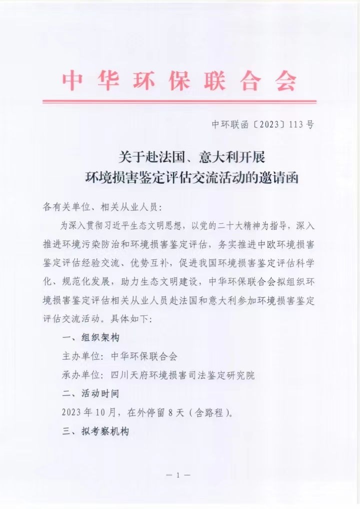 关于赴法国、意大利开展环境损害鉴定评估交流活动的邀请函