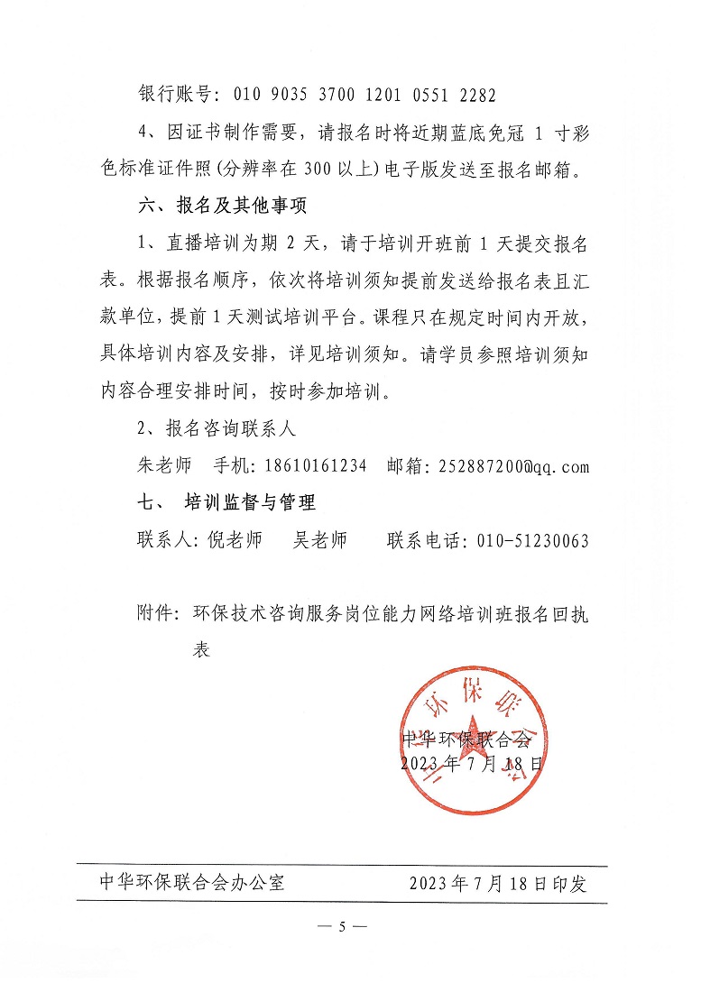 关于举办第5期“环保技术咨询服务专业技术岗位能力(环保管家)”网络培训班的通知
