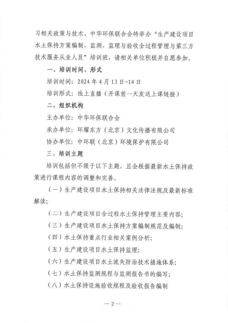 关于举办第12期“生产建设项目水土保持方案编制、监测、监理与验收全过程管理与第三方技术服务从业人员”培训班的通知
