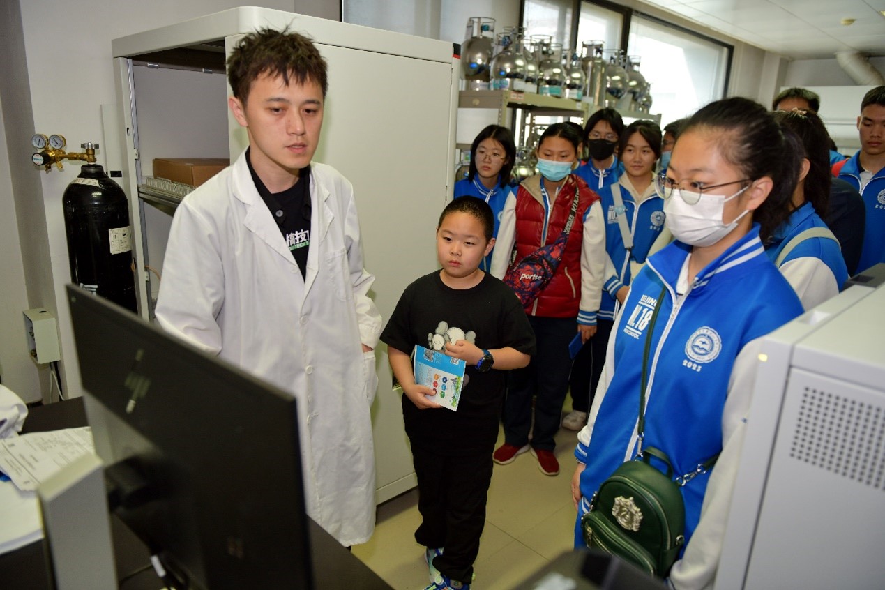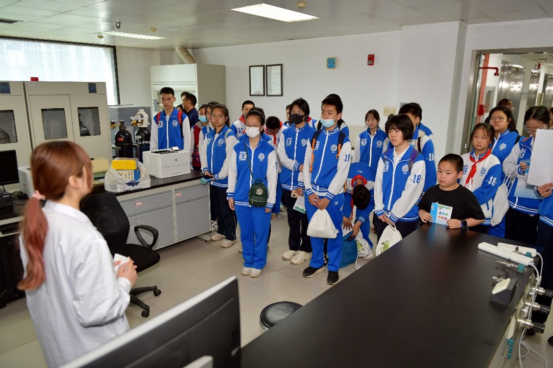 在监测分析方法实验室,三位技术人员引导大家参观实验室中的实验仪器,分别介绍了新污染物的监测和方法研究、GCMS技术在塑化剂等新污染物的监测和分析中的重要作用,讲解了一些样品处理的实验步骤,通过样品处理和测定步骤了解样品中塑化剂的种类和浓度以及对环境和人体的潜在风险,并针对小卫士们提出的问题进行答疑。