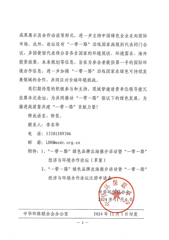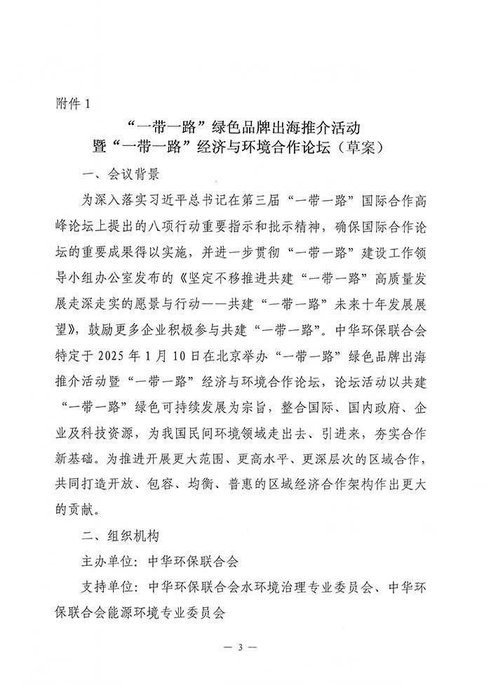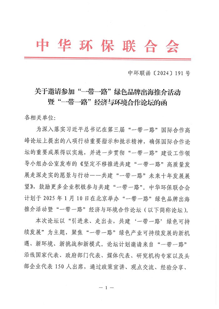 关于邀请参加“一带一路”绿色品牌出海推介活动暨“一带一路”经济与环境合作论坛的函