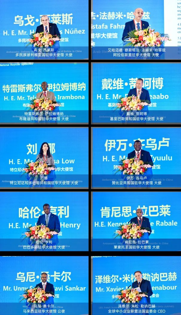 在国家主题发言环节中,多民族玻利维亚国驻华大使馆大使乌戈·西莱斯、阿拉伯联盟驻华大使馆大使艾哈迈德·穆斯塔法·法赫米·哈菲兹、布隆迪共和国驻华大使馆大使特雷斯弗尔·伊拉姆博纳、基里巴斯共和国驻华大使馆大使戴维·蒂阿博、特立尼达和多巴哥共和国驻华大使馆大使刘娜、赞比亚共和国驻华大使馆大使伊万·齐乌卢、巴巴多斯驻华大使馆大使哈伦·亨利、马来西亚驻华大使馆公使乌尼·桑卡尔、全球中小企业联盟法国监委会CEO泽维尔·米松·勒讷巴赫等国家代表分别围绕“‘一带一路’沿线国家生态环境治理需求与合作前景”进行主旨发言。