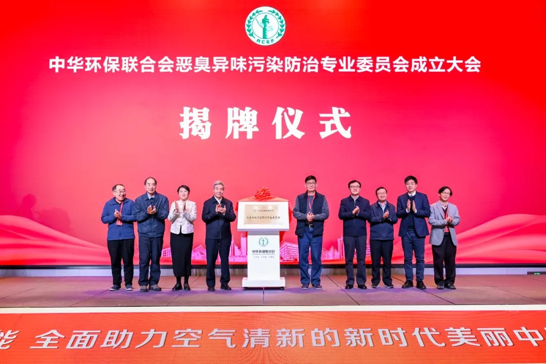 领导嘉宾共同为中华环保联合会恶臭异味污染防治专业委员会揭牌。