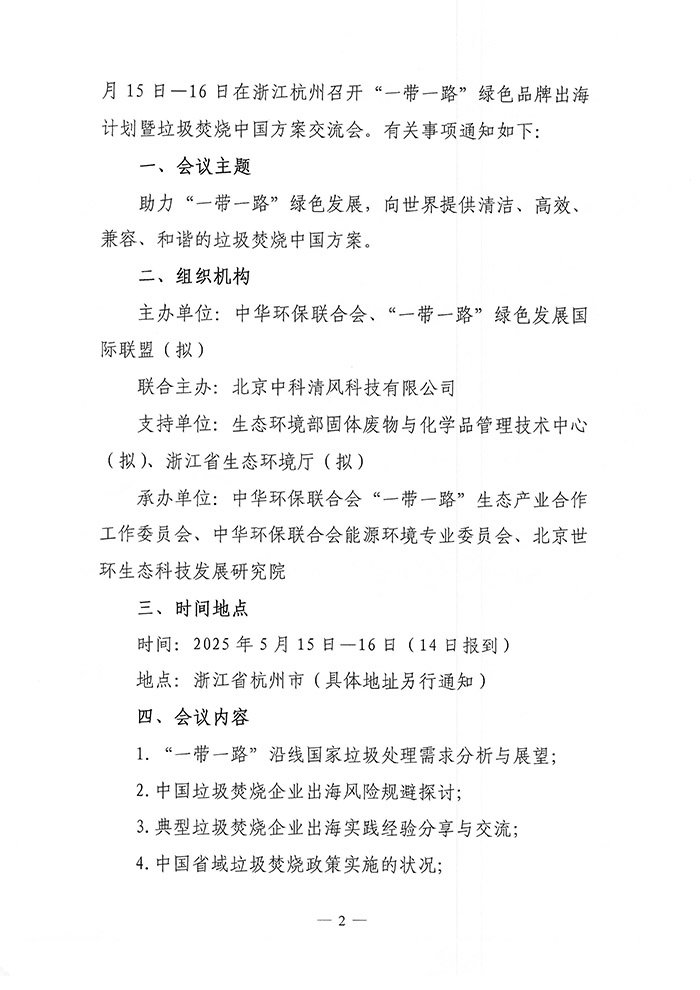 关于举办“一带一路”绿色品牌出海计划暨垃圾焚烧中国方案交流会的通知