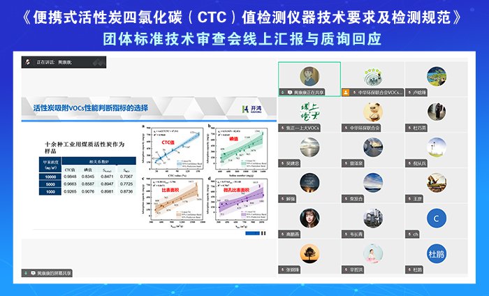 2025年4月27日,依据国家标准委、民政部《团体标准管理规定》以及《中华环保联合会团体标准管理办法(试行)》等相关规定,中华环保联合会以视频会议形式组织召开了《便携式活性炭四氯化碳(CTC)值检测仪器技术要求及检测规范》团体标准(初稿)技术审查会。专家们从技术要求的合理性、检测方法的科学性、规范内容的完整性以及实际应用的可行性等多个维度展开了热烈讨论与深入分析,提出了诸多宝贵意见与专业建议。
