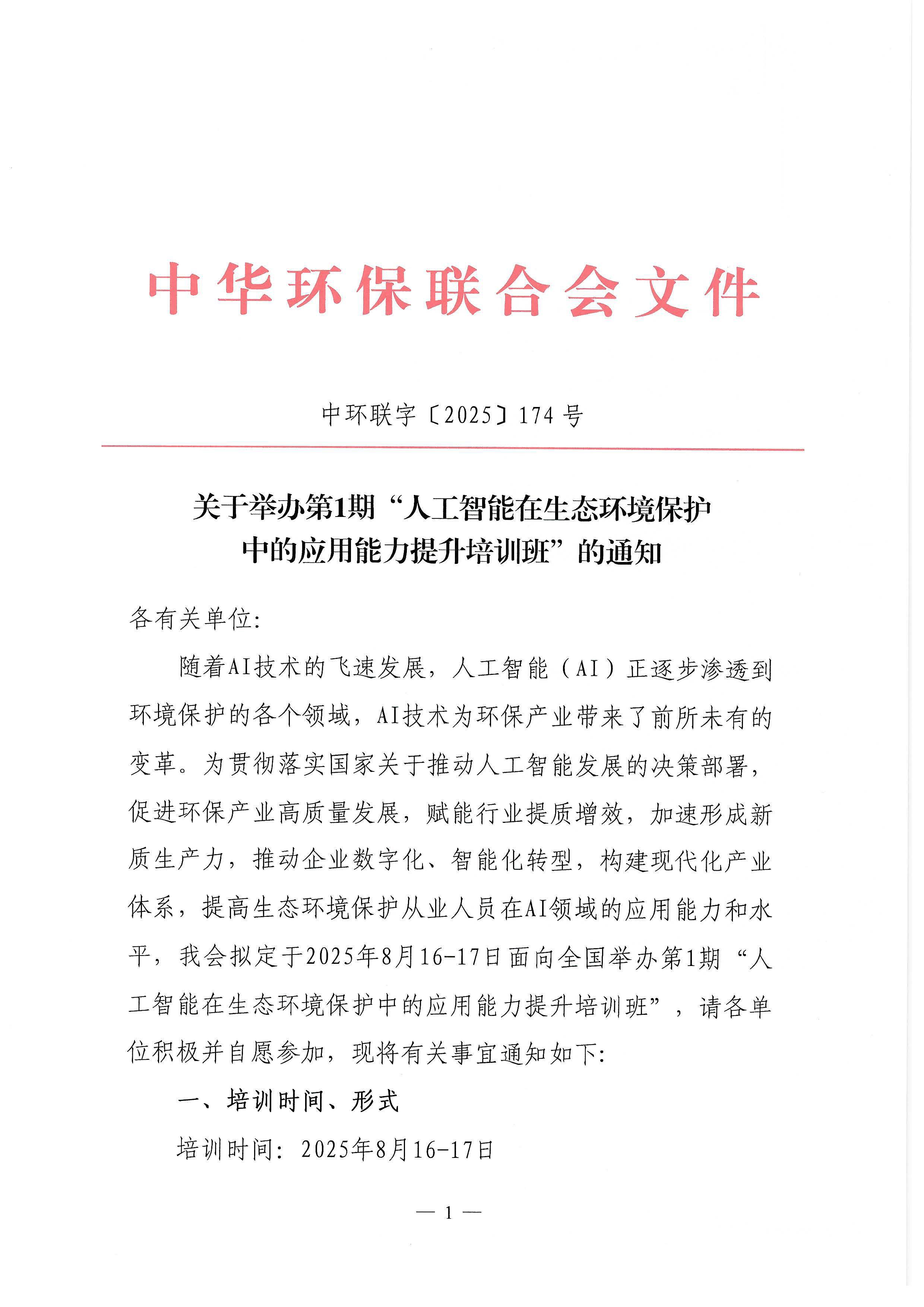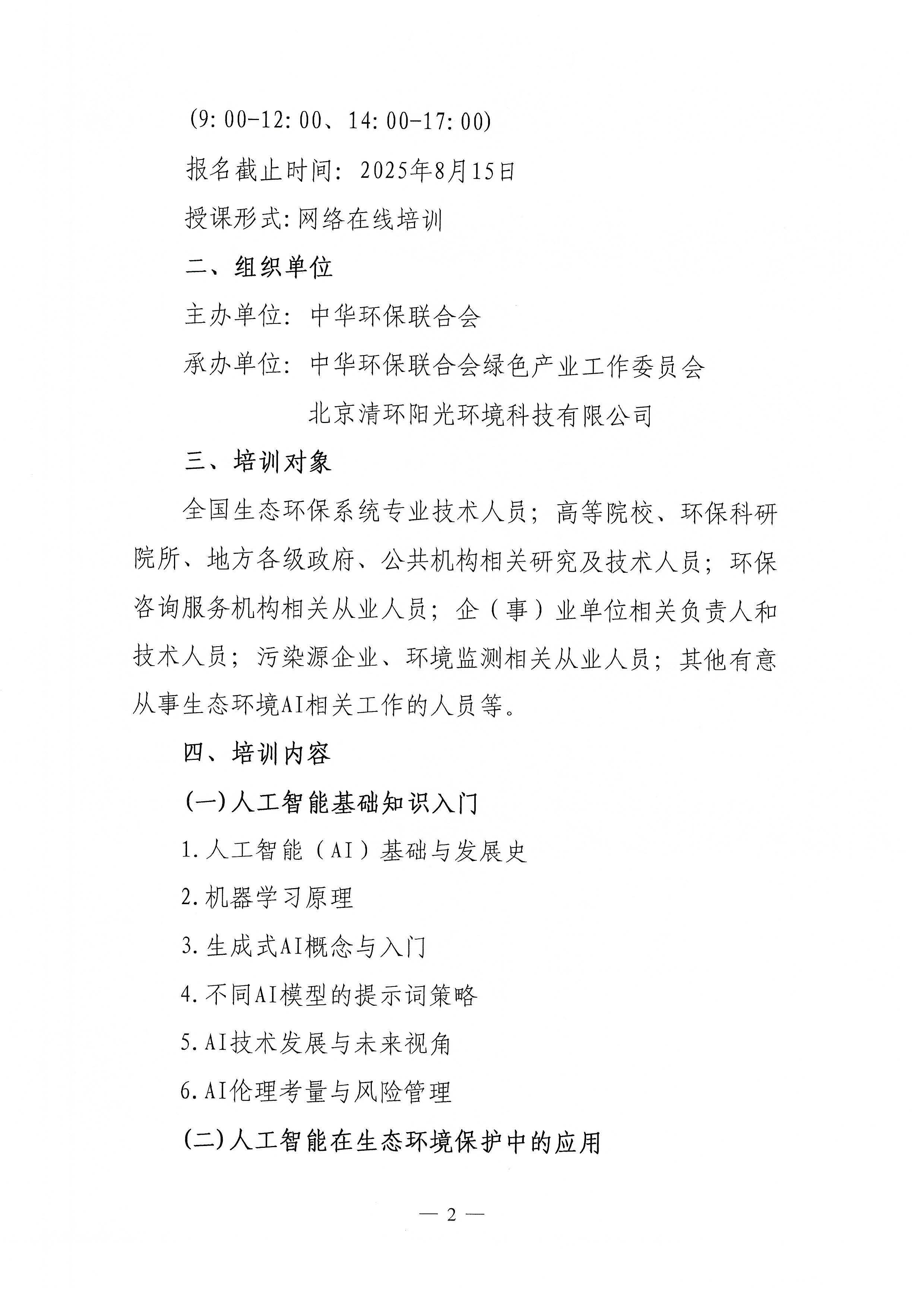 关于举办第1期“人工智能在生态环境保护中的应用能力提升培训班”的通知