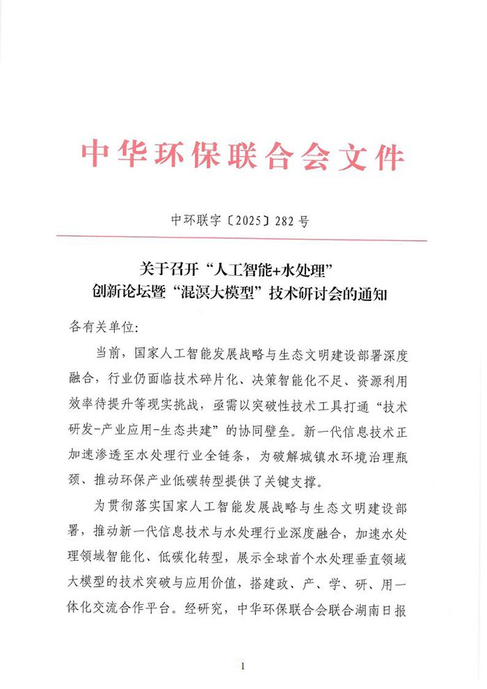 关于召开“人工智能+水处理”创新论坛暨“混溟大模型”技术研讨会的通知