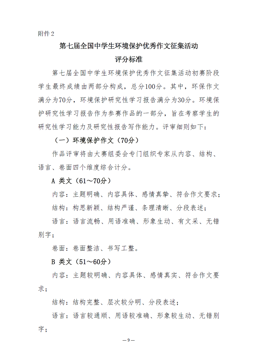 关于举办第七届全国中学生环境保护优秀作文征集活动的通知