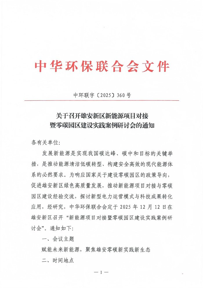 关于召开雄安新区新能源项目对接暨零碳园区建设实践案例研讨会的通知