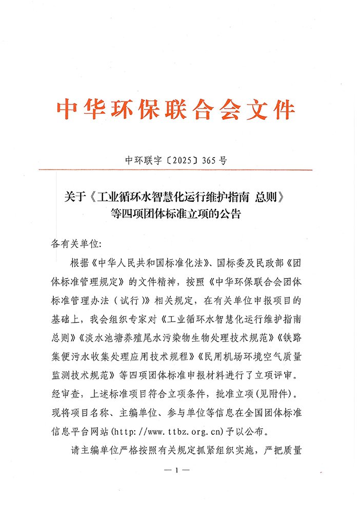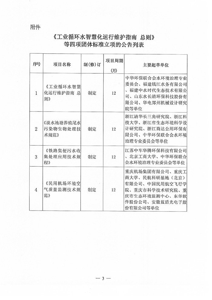 关于《工业循环水智慧化运行维护指南 总则》等四项团体标准立项的公告
