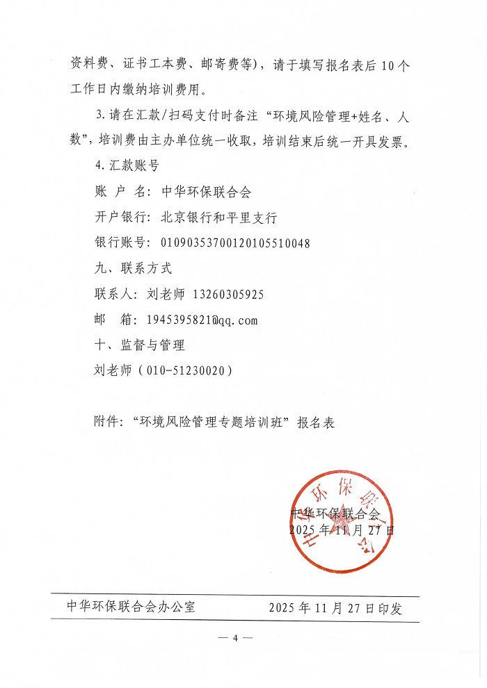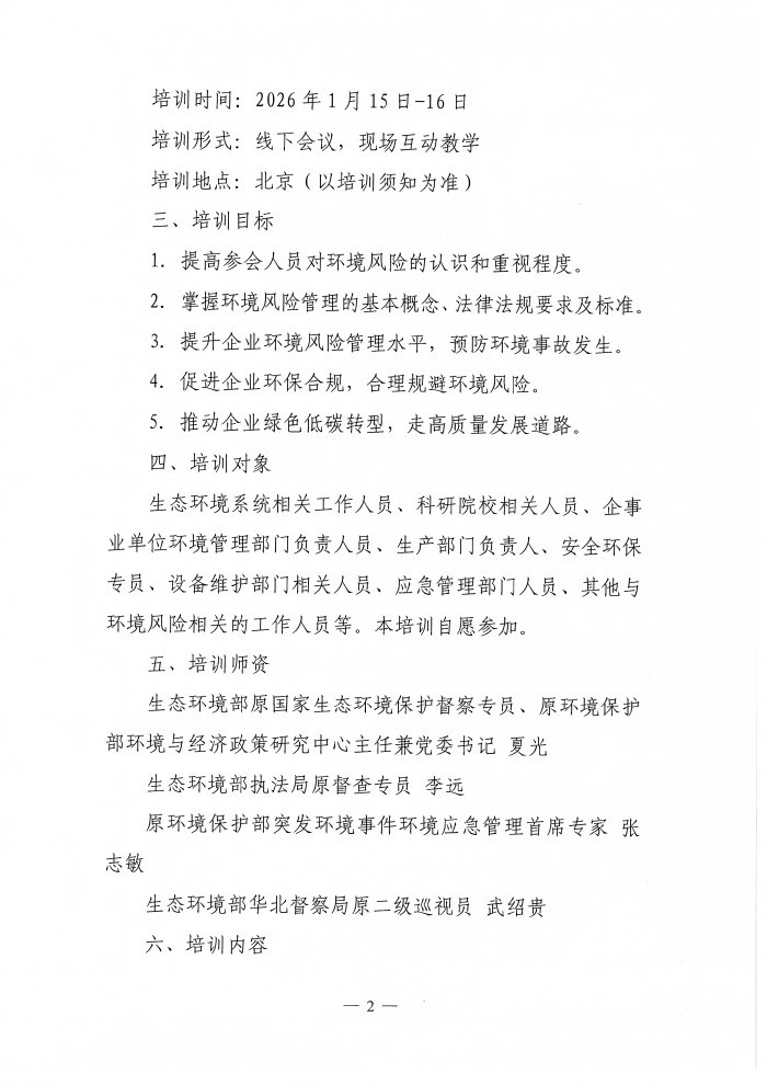关于举办“环境风险管理”专题培训班的通知