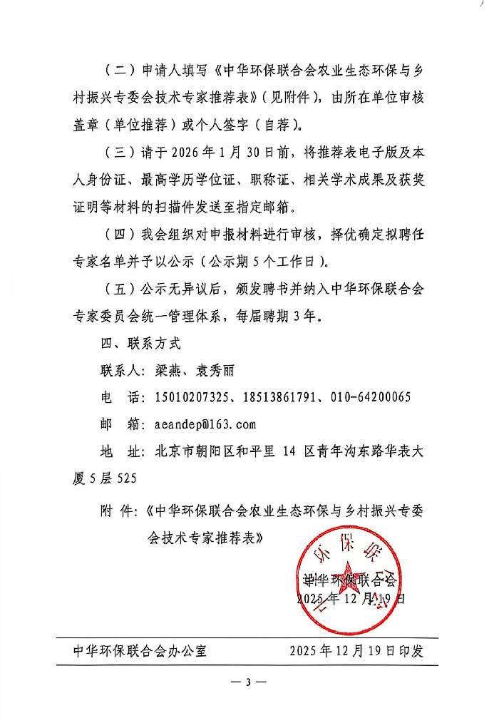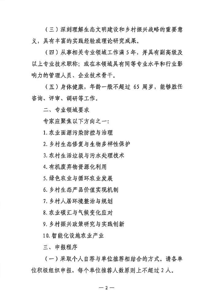 关于征集"中华环保联合会农业生态环保与乡村振兴专委会"专家组成员的通知