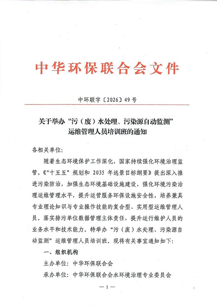 关于举办"污(废)水处理、污染源自动监测"运维管理人员培训班的通知