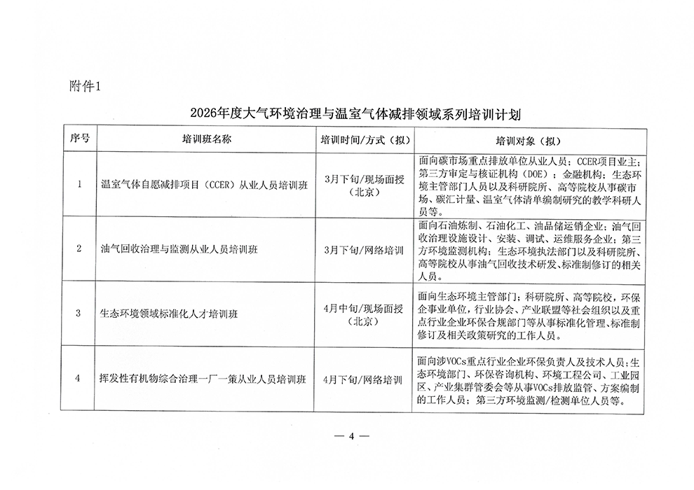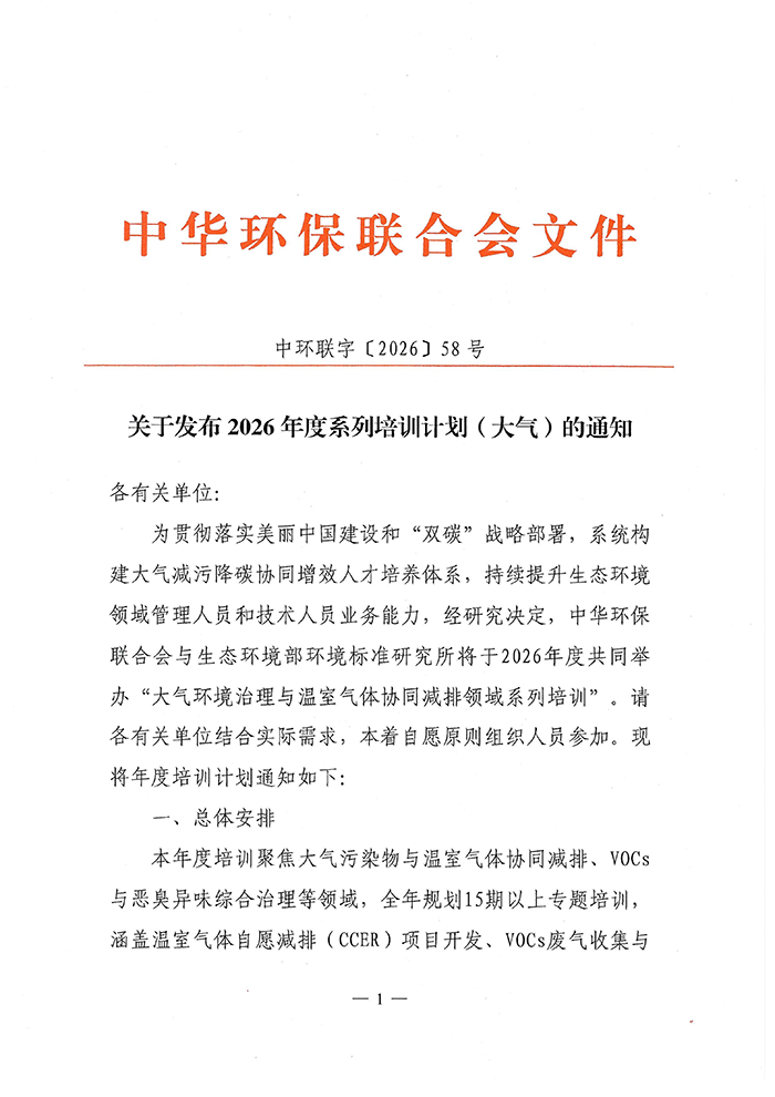 关于发布2026年度系列培训计划(大气)的通知