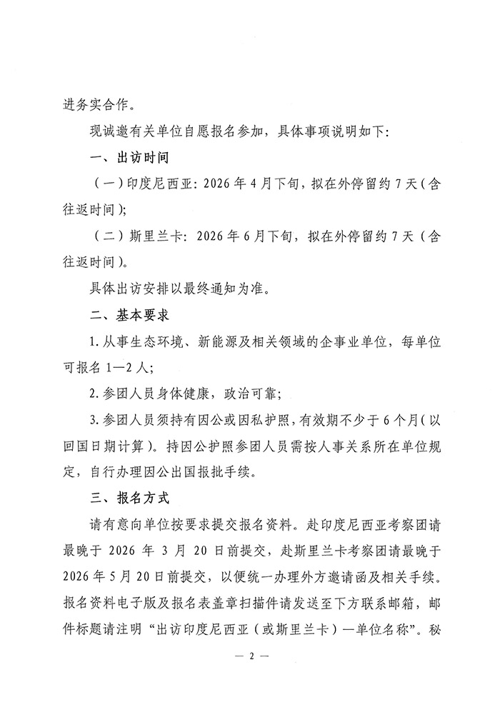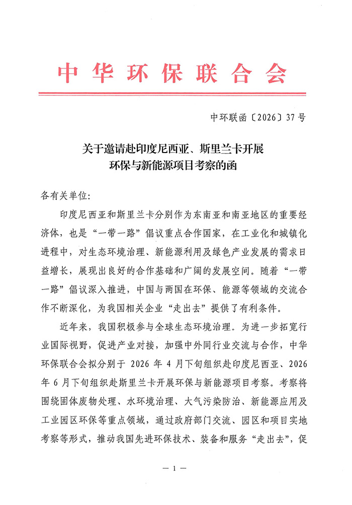 为深入践行“一带一路”绿色发展理念,高质量推动中印尼在生态环保、清洁能源、绿色基建及绿色产业领域务实合作,中华环保联合会“一带一路”生态产业合作工作委员会拟于2026年4月19日—25日,组织印尼环保与绿色产业考察团赴印度尼西亚开展公务对接、项目洽谈、园区考察及合作签约等系列活动。