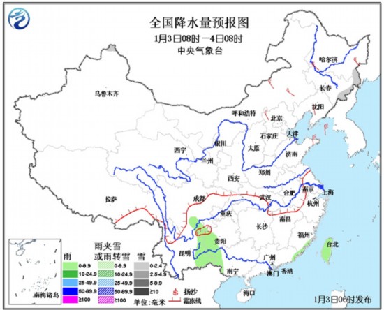 5日08时至6日08时,新疆北部、内蒙古东北部、西北地区东部、川西高原北部等地有小到中雪或雨夹雪;西南地区东部、广西西部、云南南部等地有小雨或阵雨。