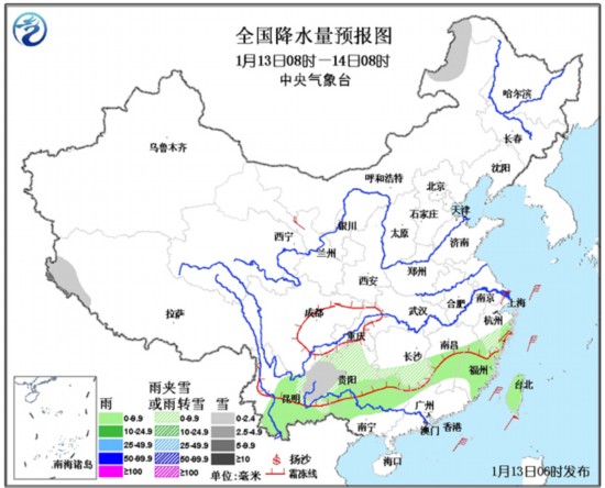 明天起,雨雪天气全线收缩,江南、华南、西南地区东部都有望放晴,只有云南中南部、贵州西部等地仍将有降雨或雨夹雪出现。