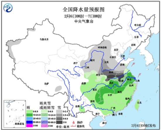6日08时至7日08时,新疆西南部、内蒙古中部、西北地区东部、华北西部和南部、黄淮中西部、江淮中西部、江汉北部等地有小到中雪或雨夹雪,其中,河南中南部、安徽北部等地有大雪,局地暴雪;西南地区东部、江淮东部、江汉南部、江南、华南大部、台湾等地有小到中雨。东海北部、黄海南部有6~8级的风。