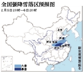 新京报讯 (记者邓琦)中央气象台昨日10时将暴雪蓝色预警升级为黄色预警,并于18时继续发布暴雪黄色预警。预计5日20时至6日20时,河南中南部、湖北西北部、安徽北部、江苏北部、山东东南部等地有大雪,其中,河南南部、湖北西北部、安徽西北部等地的部分地区有暴雪(10—15毫米)。由于目前正值春运返程高峰时段,降雪天气将对交通运输造成较大影响。