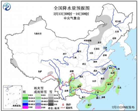 而今明两天,雨雪天气又将迅速减弱,尤其是在长江流域一带,雨雪将呈现短暂消退的趋势;江南地区的雨雪也将明显收敛。未来24小时,只有贵州北部、安徽中南部、江西东部、浙江西部等地的部分地区仍有小到中雪或雨夹雪;四川盆地东南部、贵州南部、云南东部、广东、福建等地有小雨,贵州南部局地有冻雨。预计14日,也就是元宵节当日,长江流域天气普遍好转;只有江南西南部、华南大部、贵州一带仍然持续雨雪天气,但气温略有回升。