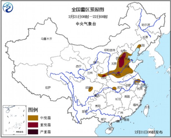 未来三天,华北、黄淮等地将持续被雾或霾缠身;同时,长江中下游的部分地区将出现间歇性雾。中央气象台今晨继续发布霾黄色预警:预计21日08时至22日08时,北京、天津、河北中南部、山东中西部、河南中北部、陕西关中地区、山西南部等地气象条件不利于空气中污染物扩散,上述大部地区有中度霾,部分地区有重度霾。