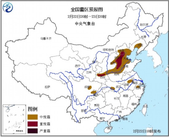 自2月20日起,中央气象台已连续3天发布霾黄色预警。预计今天夜间到明天,北京、天津、河北中南部、山东西北部、河南北部、陕西关中地区、山西南部等地气象条件不利于空气中污染物扩散,大部地区有中度霾,其中京津冀、陕西关中地区的部分地区有重度霾;另外,上述局部地区夜间至明天早晨可能伴有能见度低于1公里的大雾。