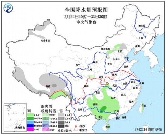 另外,从明天开始,长江中下游地区将有一次明显降雨过程,南方大部将先后出现小到中雨,其中,江南北部沿江地区的局地有大雨。未来24小时降水预报为:新疆北部、西藏南部和中东部、华北北部等地有小到中雪或雨夹雪,贵州大部、湖北西南部、湖南中南部和西部、华南中西部和台湾东部等地有小雨,广西北部的部分地区有中雨。