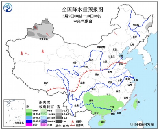 中央气象台预计,9日至10日,较强冷空气将继续在新疆、内蒙古西部等地区发力,新疆北部有小到中雪,其中阿勒泰、塔城、伊犁河谷、天山地区等地有大雪;新疆北部将有4~8℃降温并伴有5~7级风,山口风力可达9级。南疆盆地、内蒙古西部等地的局部地区有浮尘或扬沙等沙尘天气。随后,冷空气将继续东移南下,逐渐影响我国大部地区。