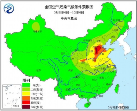 对于京津冀地区来说,在冷空气未到达之前,持续静稳的天气形势对污染物的扩散不利,预计今日至11日华北和黄淮北部等地将有轻度到中度霾,其中,北京南部和河北中南部等地的部分地区有重度霾。