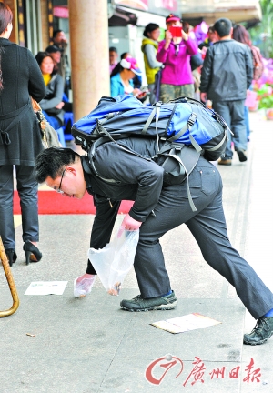 昨日上午,记者随叶榄来到罗湖区东湖公园。他打开随身的塑料袋,向记者展示已经捡到的烟头:“这是我来深圳这几天在大梅沙和中心公园捡的烟头,还不够拼,还得捡。”说罢,叶榄低头在东湖公园捡起了烟头。