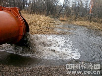 中国经济网扬州3月24日讯 近日,笔者在长江瓜州段看到,江苏扬州第二发电有限责任公司厂区与长江仅一堤之隔,在该公司江边码头吊机后面的江堤下有3根红色排水管伸出。此时,左边一根排水管正向外大量排出墨汁般污水,污水在江滩上汹涌奔流后直接流入长江,污水染黑了排污口附近近百米长的江面。