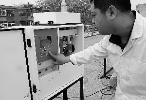 4月18日上午10时,记者来到市监测站。在监测站的屋顶上,记者看到三台白色检测仪器。一位监测站的工作人员告诉记者,这些仪器是专门用来采集空气中各类颗粒物质的。
