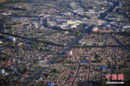 8月3日,记者乘坐动力三角翼从新疆特克斯县周边的山顶起飞,从空中俯拍世界最大规模的八卦城。来自全国各地的飞行爱好者们正在此地参加由特克斯县天翼航空俱乐部组织的飞行嘉年华活动,今后到此旅游的游客可从空中俯览最大规模八卦城的壮观景象。据介绍,特克斯县根据《周易》八卦“后天图”方位设计建成,路路相通,街街相连,有着神奇迷宫般的街道布局,是现今世界上唯一一座保存良好、卦爻完整、规模最大的八卦城。刘新 摄