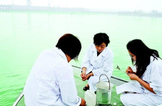 图为:丹江口环境监测站工作人员在库区监测水质。