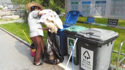 住在小区的孙女士告诉记者,光大西园是北京市2010年命名的垃圾分类小区,当时每家居民都领到了垃圾分类的宣传册、两个家用垃圾桶和两卷垃圾袋,她还特别认真地看了看。为了做到垃圾分类,她在厨房放了两个垃圾桶。而且全家只有她分类,每次去倒垃圾她都要再分拣一次,感觉很麻烦。