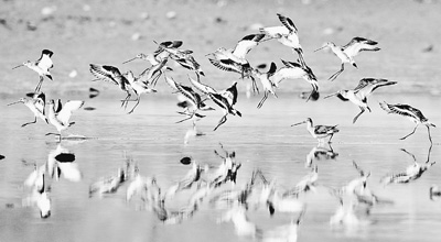 2014年10月,一群黑尾塍鹬在鄱阳湖湿地嬉戏。 |
