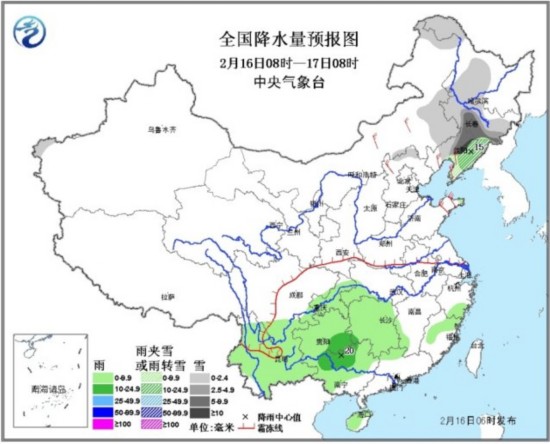 人民网北京2月16日电 (史雅乔)根据中央气象台的预报,从16日起,未来3天,东北地区有较强降雪,南方地区有大范围降水天气。
