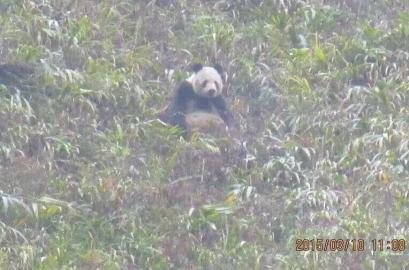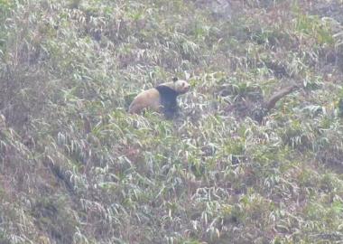 雅安牛背山现野生大熊猫 山坡草地晒太阳